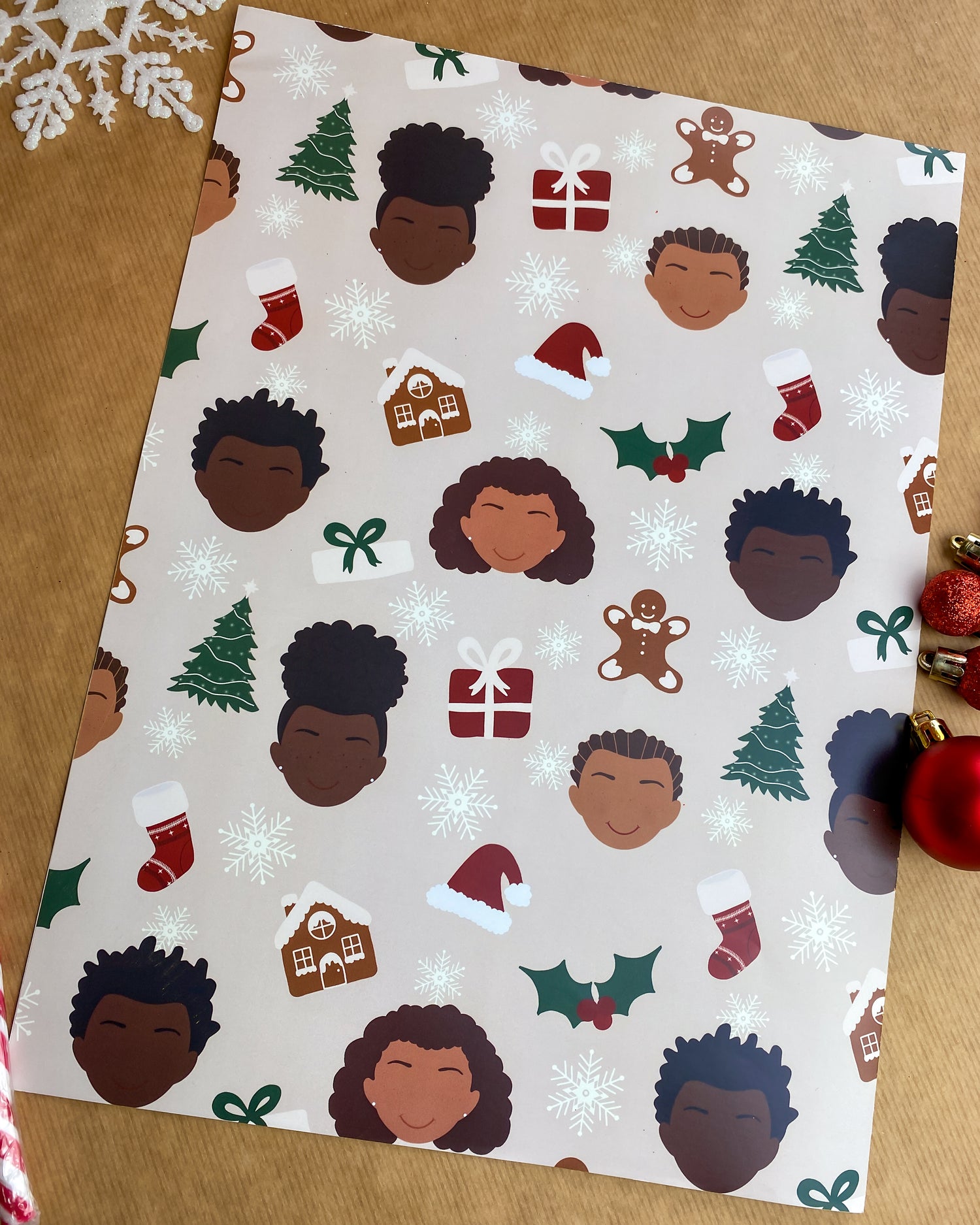 Black Kids Christmas Ethnic Mixed Race Children Wrapping Paper Gift Wrap Boys & Girls Boy little Girl