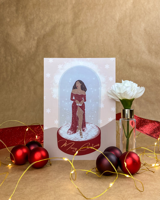 Black Woman Snow Globe, Seasons Greetings - Black Christmas Card