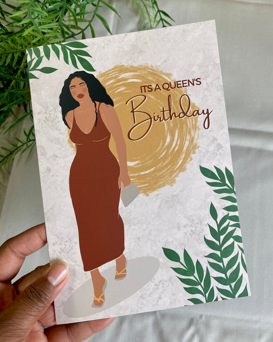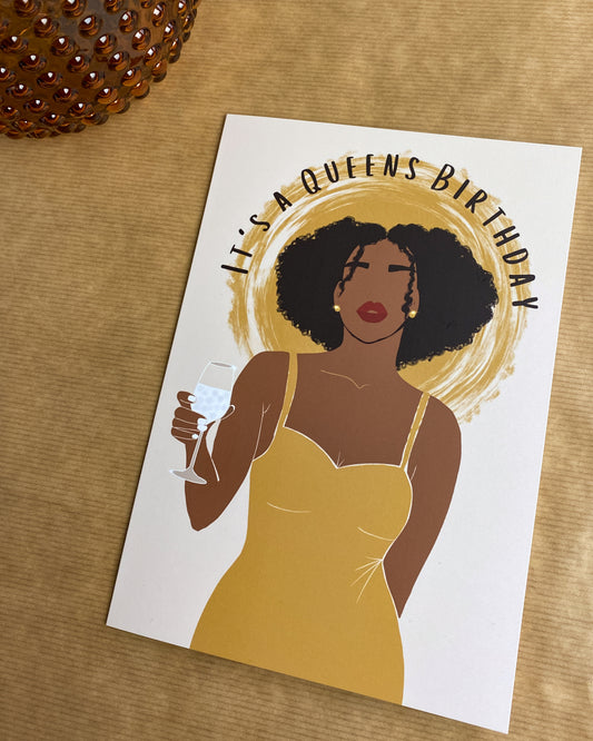 It's A Queens Birthday - Black Woman Birthday Card - Mid