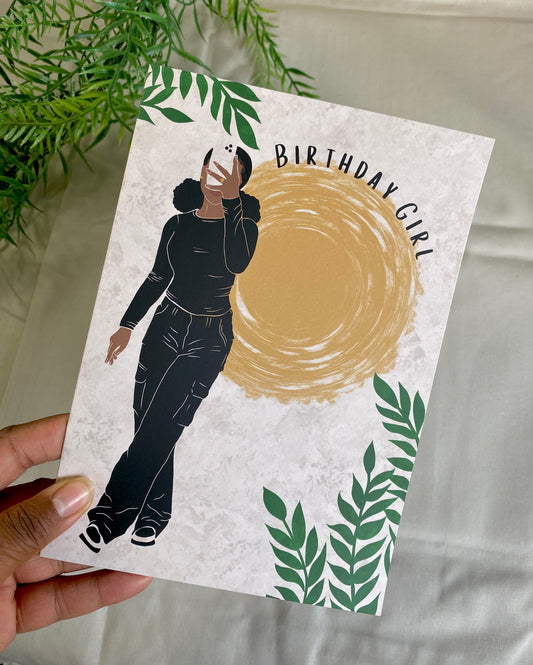 Amara’s Curly Afro - Black Girl Blank Birthday Celebration Card