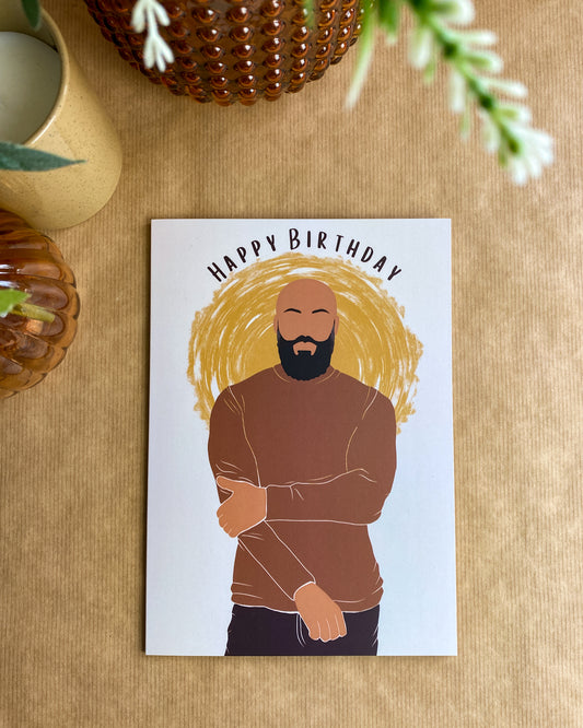 Bald & Bearded Mixed Race / Black Man Birthday Card. Black Dad Card.