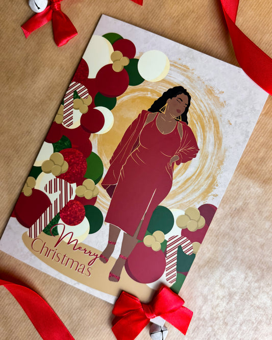 Dionne’s Christmas Party Balloons - Black Woman Christmas Card