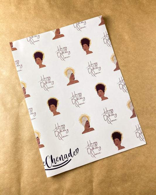 Happy Birthday Queen Wrapping Paper -Happy Birthday Ethnic Black Mixed Race Woman Gift Wrap