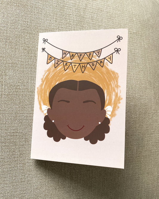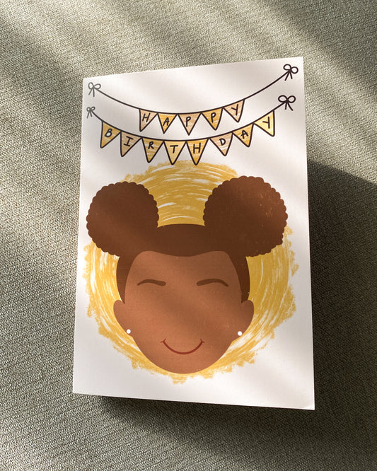 Kids Mini Birthday Card - Girl With Afro Puffs Ginny