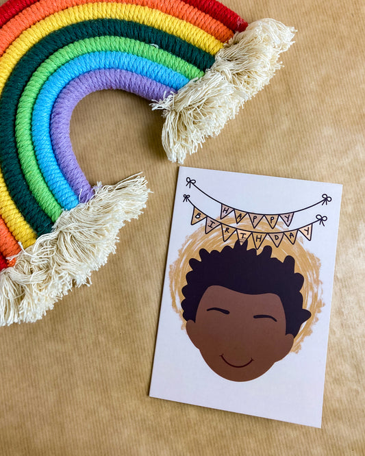 Kids Mini Birthday Card - Boy With Braids - Mehkai