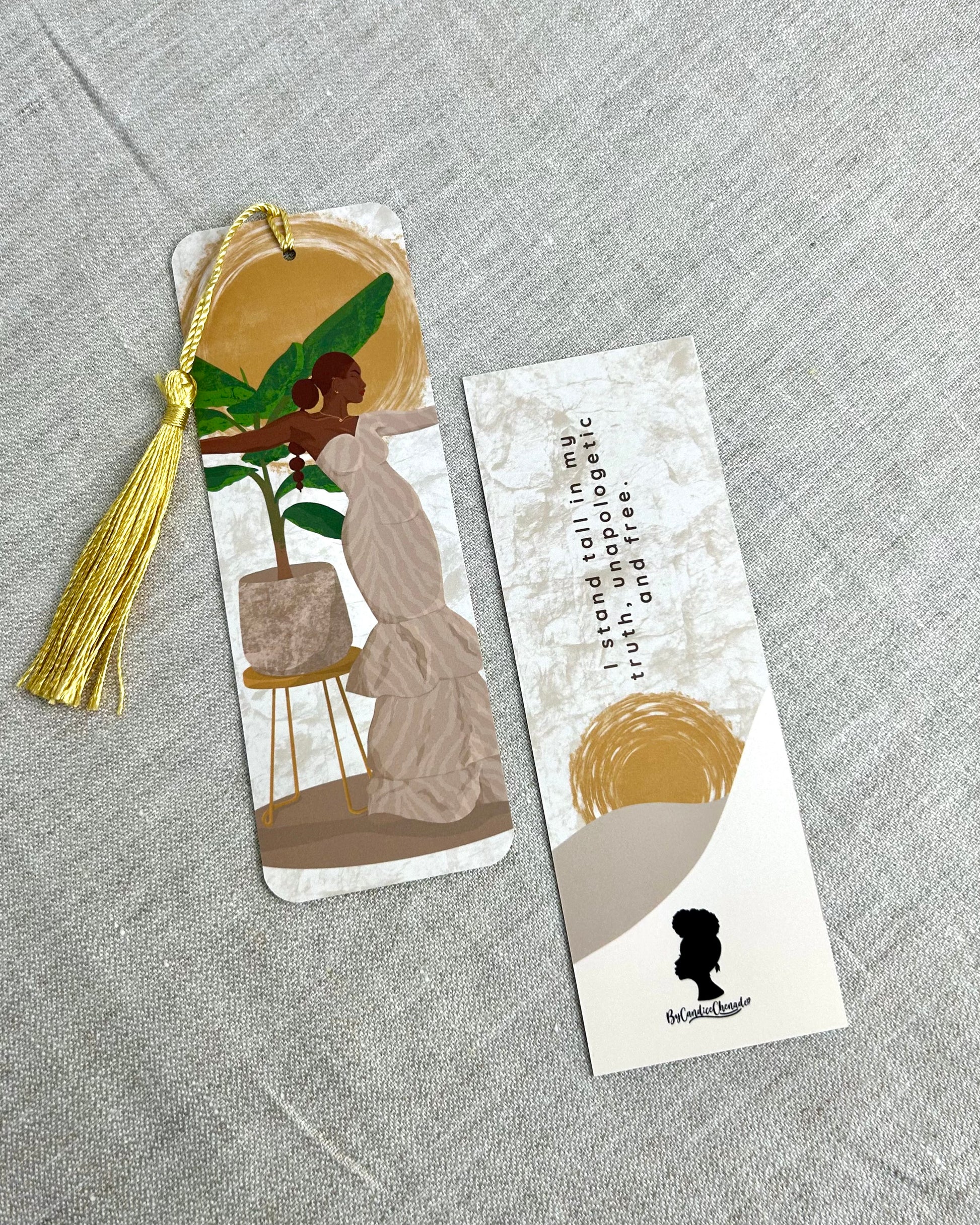 Add a touch of beauty and motivation to your reading with these luxuriously crafted bookmarks. Designed to keep you inspired, each piece features a stunning full illustration on one side and a powerful affirmation on the back—a reminder to pause, reflect, and thrive. Available individually or as a set.