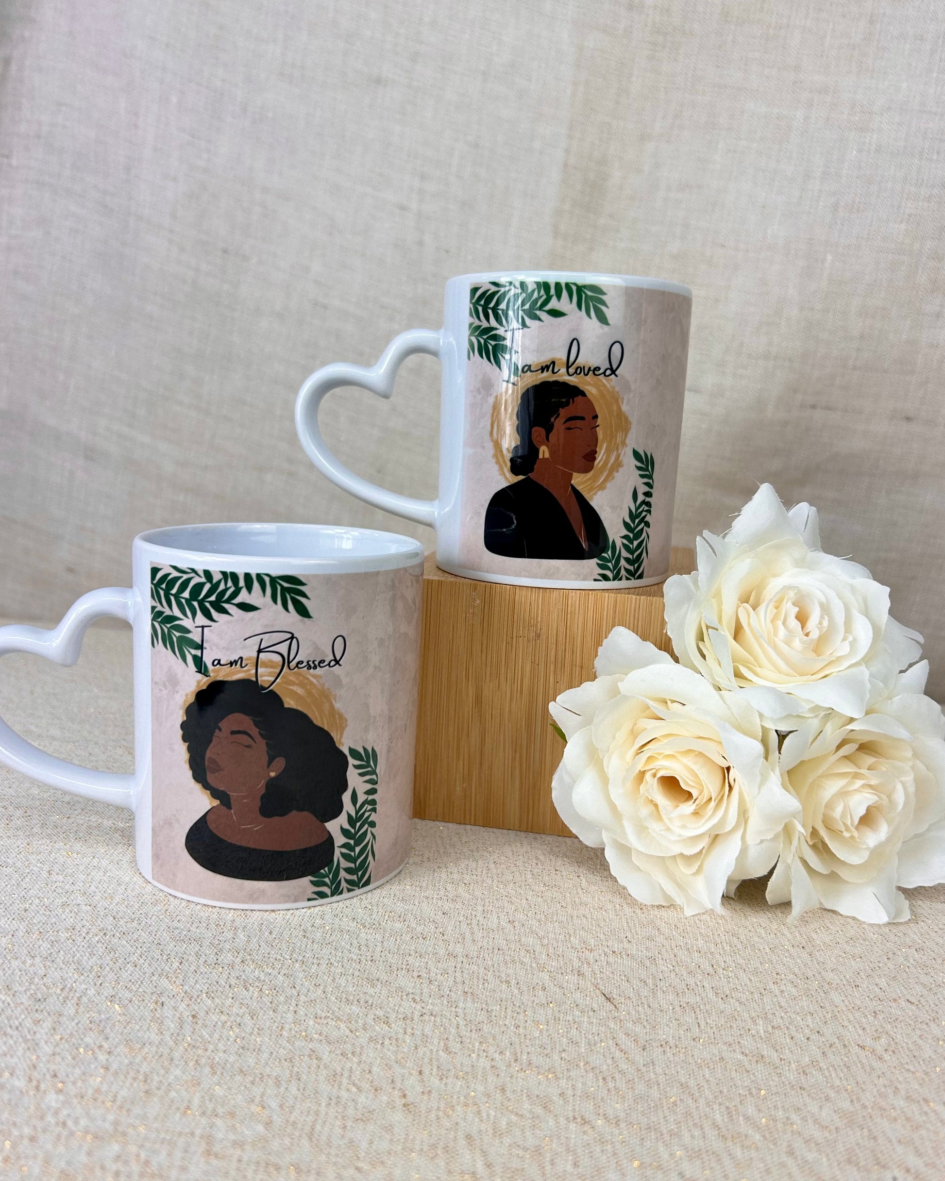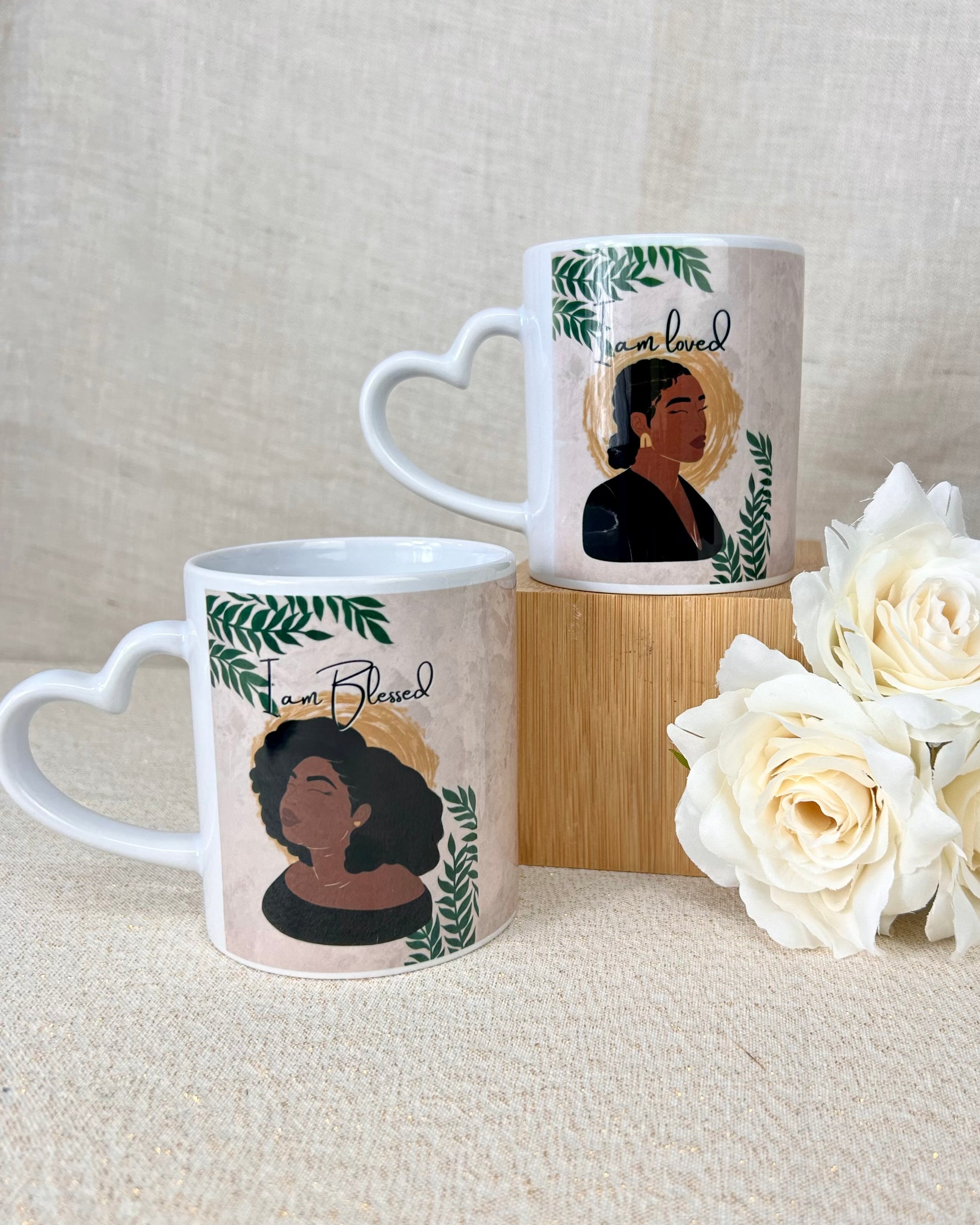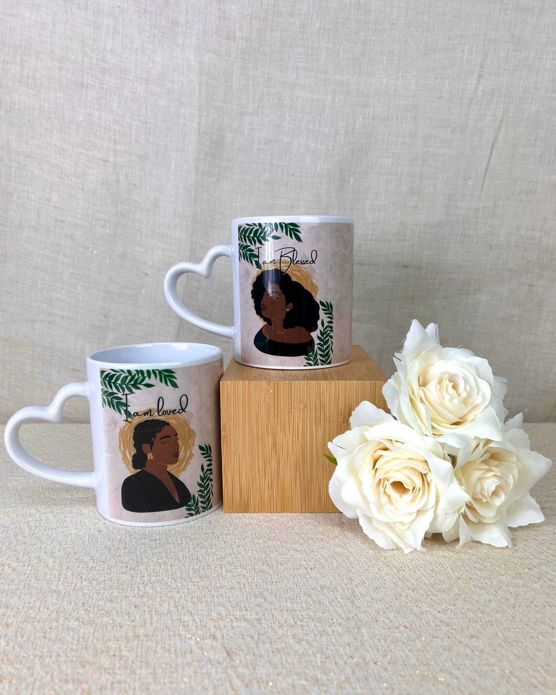 I Am Loved, I Am Blessed Heart Handle Mug Set