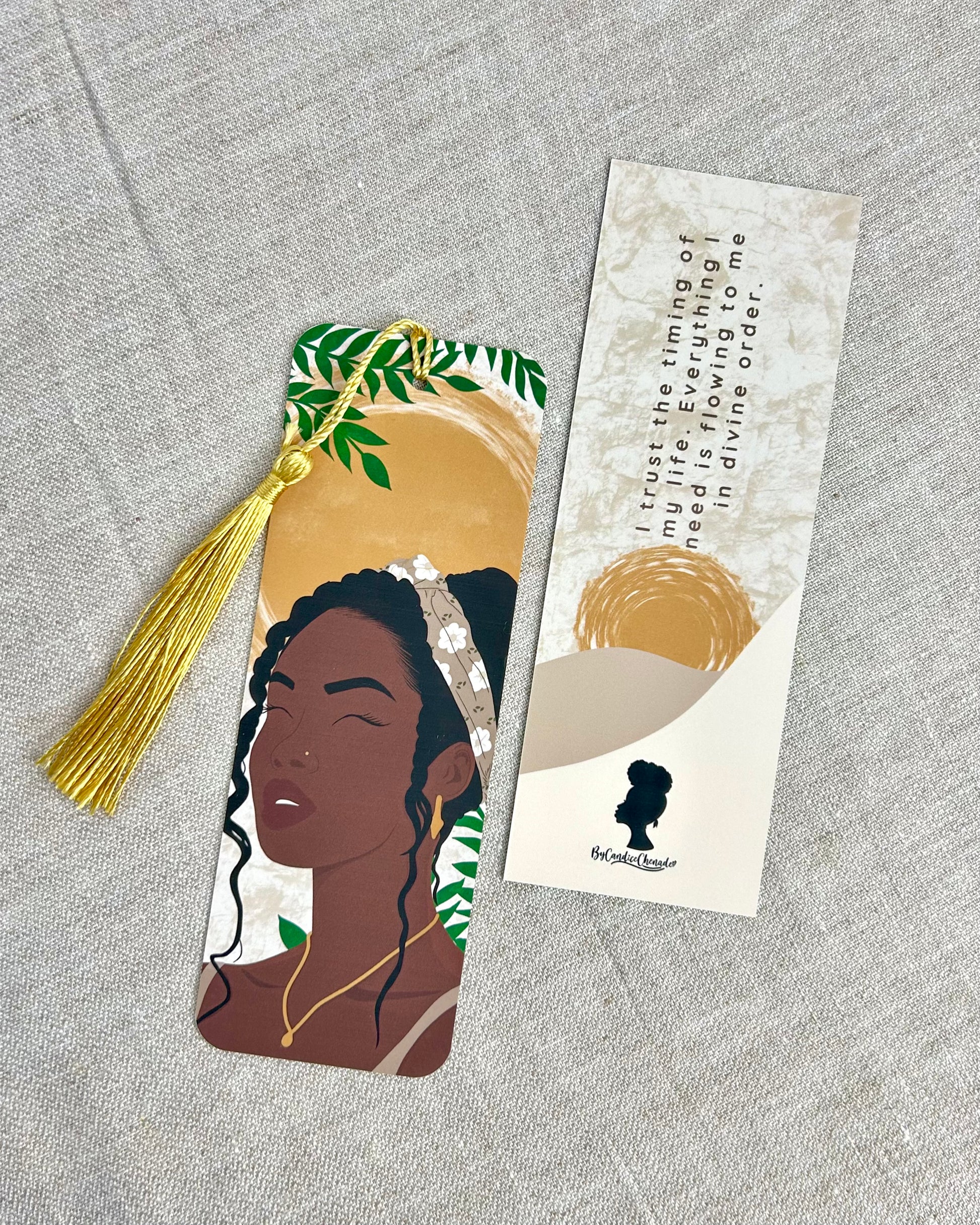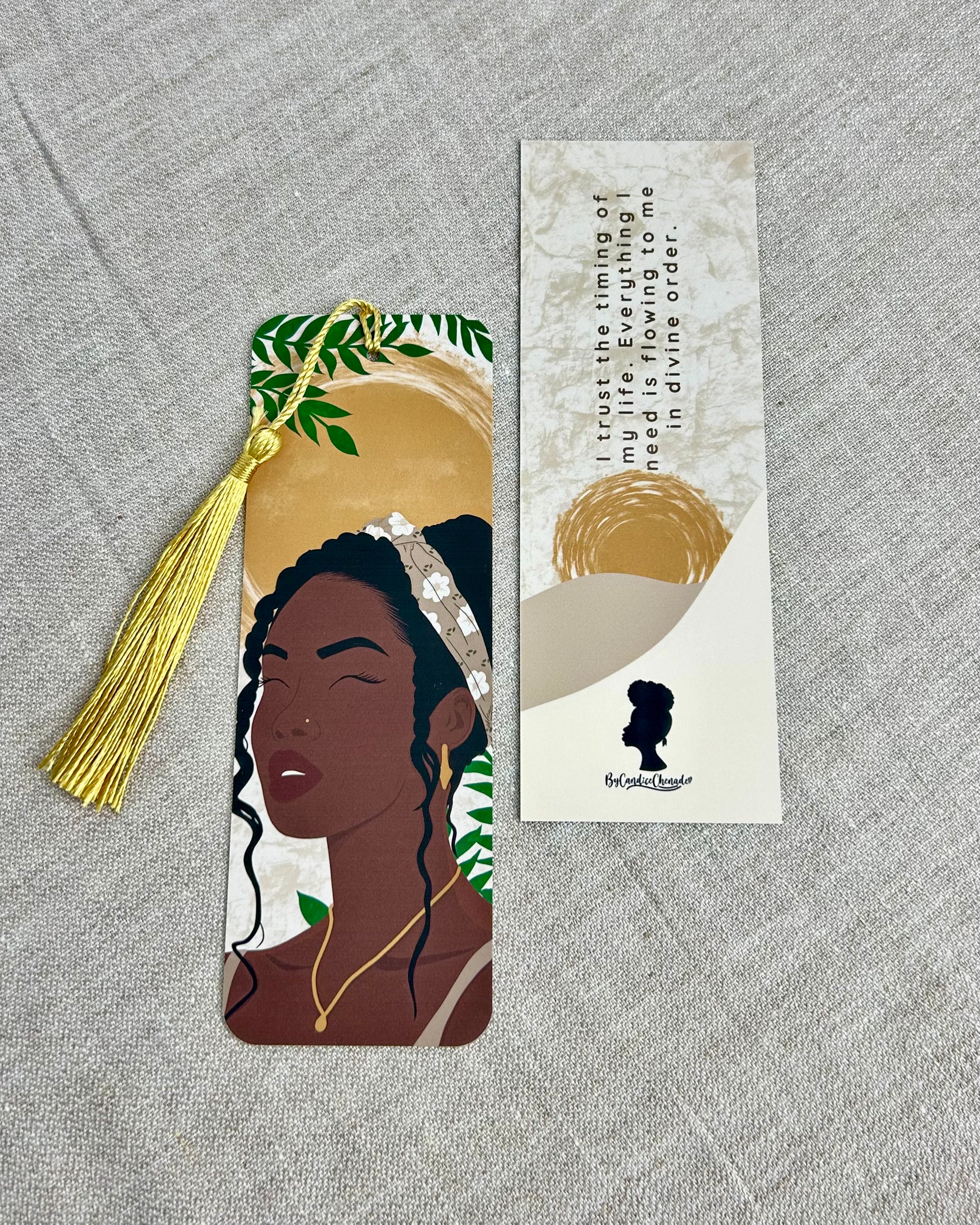 Add a touch of beauty and motivation to your reading with these luxuriously crafted bookmarks. Designed to keep you inspired, each piece features a stunning full illustration on one side and a powerful affirmation on the back—a reminder to pause, reflect, and thrive. Available individually or as a set.