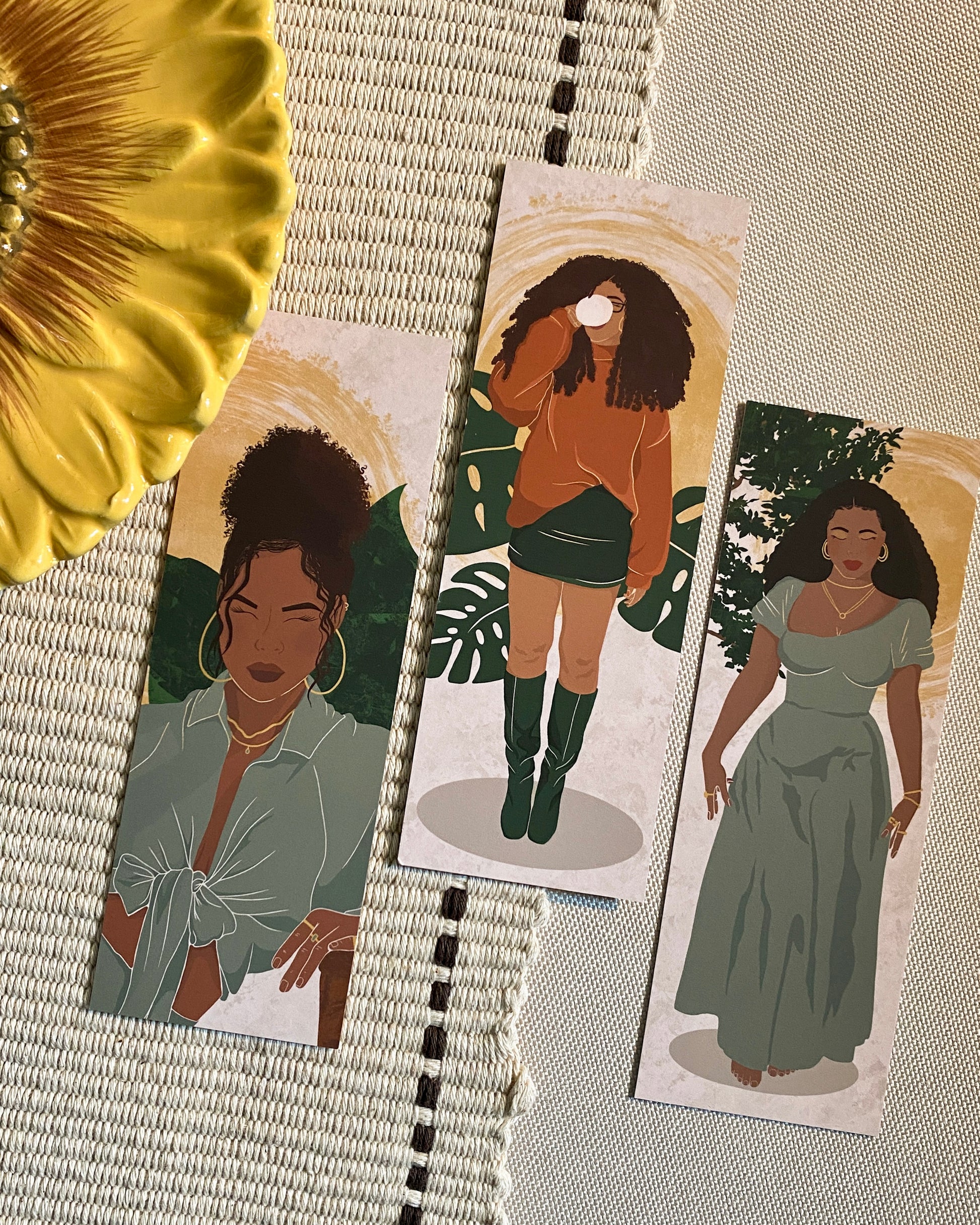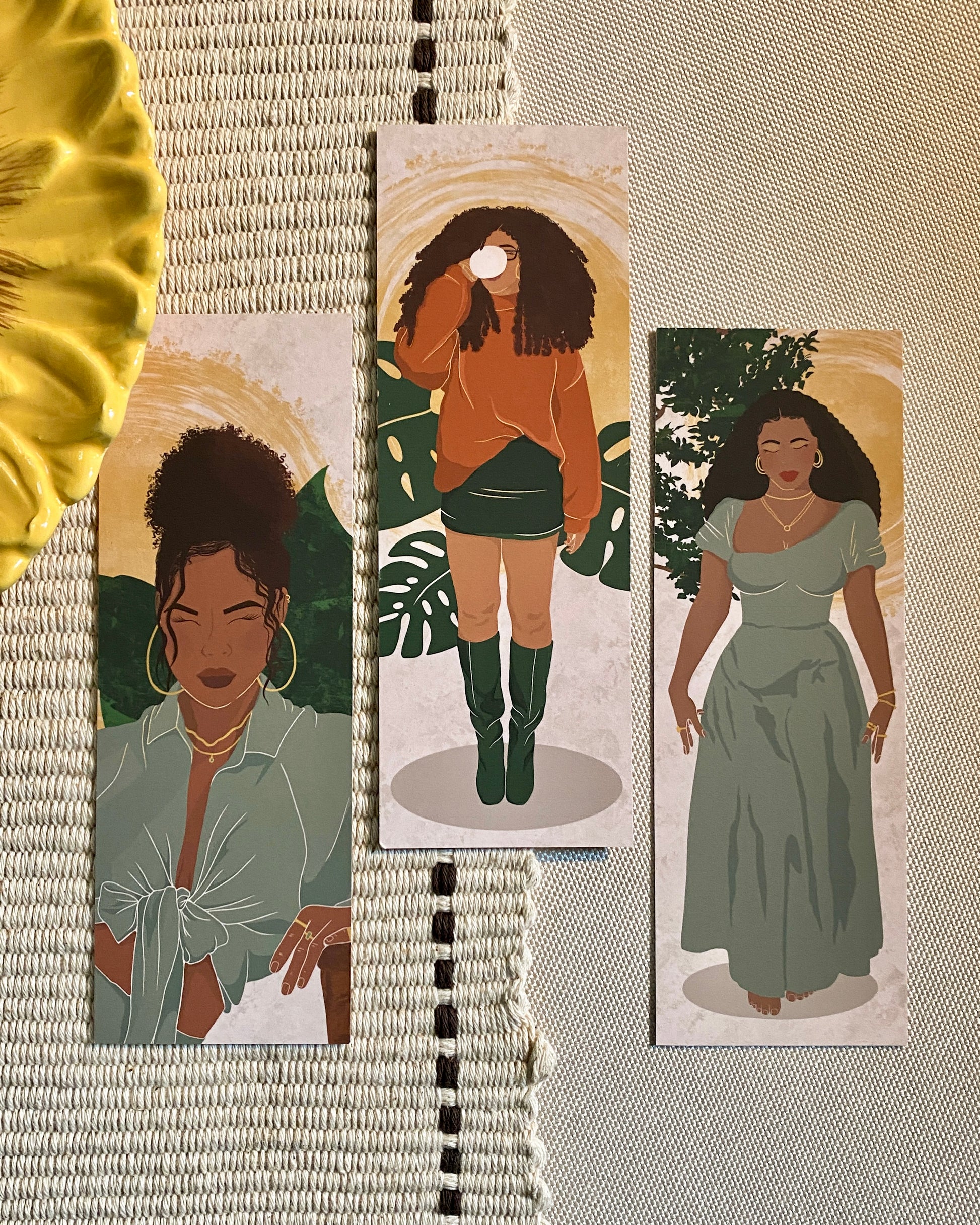 3 Pack Its A Vibe Black Woman Bookmark Set. Green