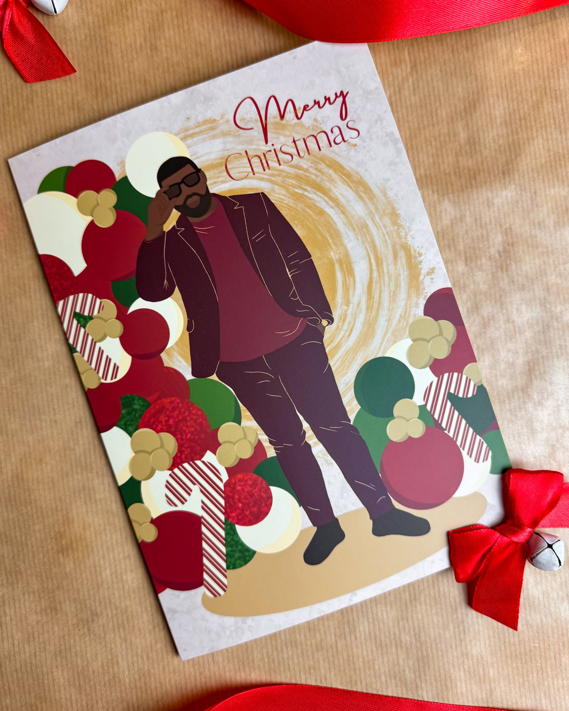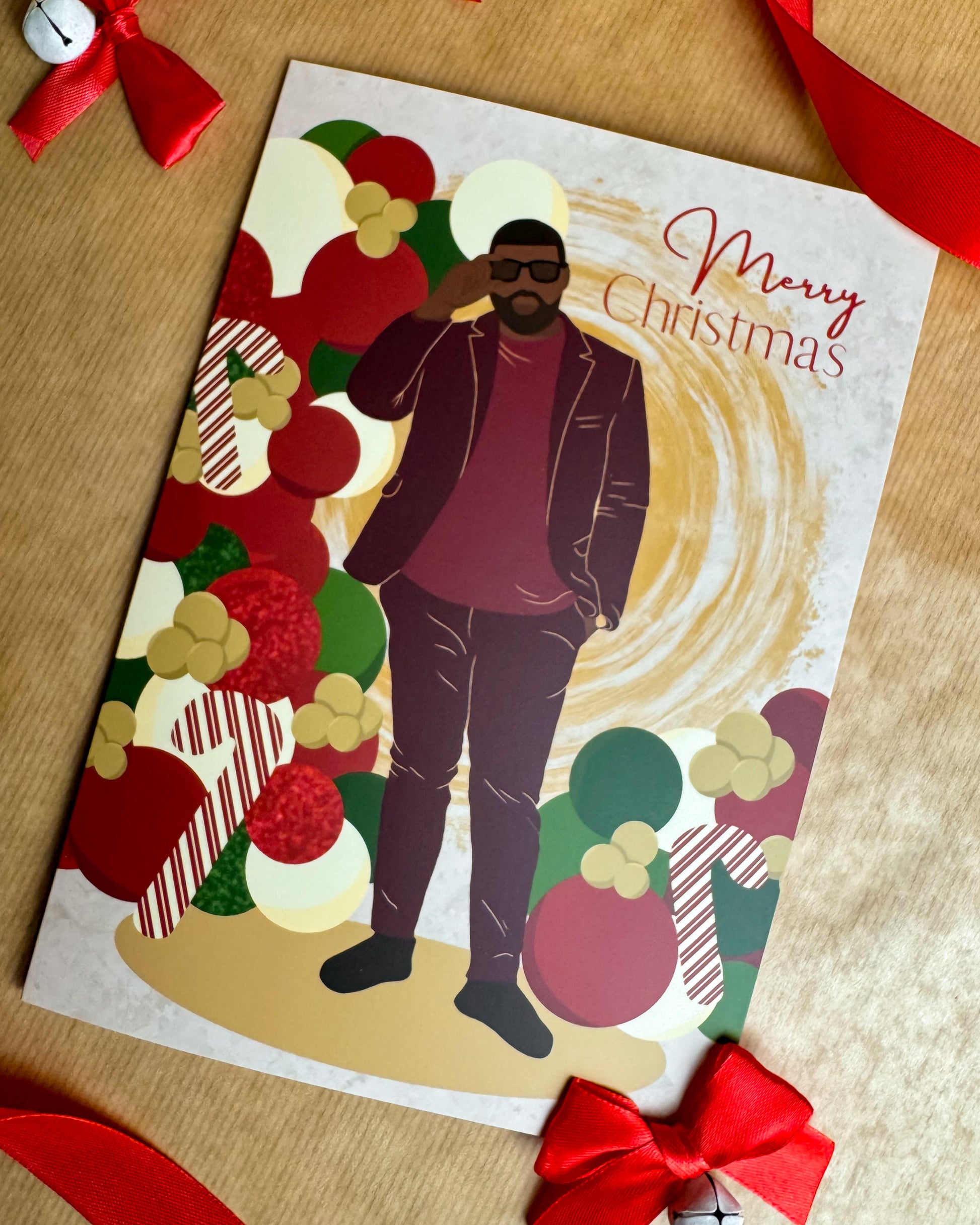 Ade’s Christmas Party Balloons - Black Man Christmas Card