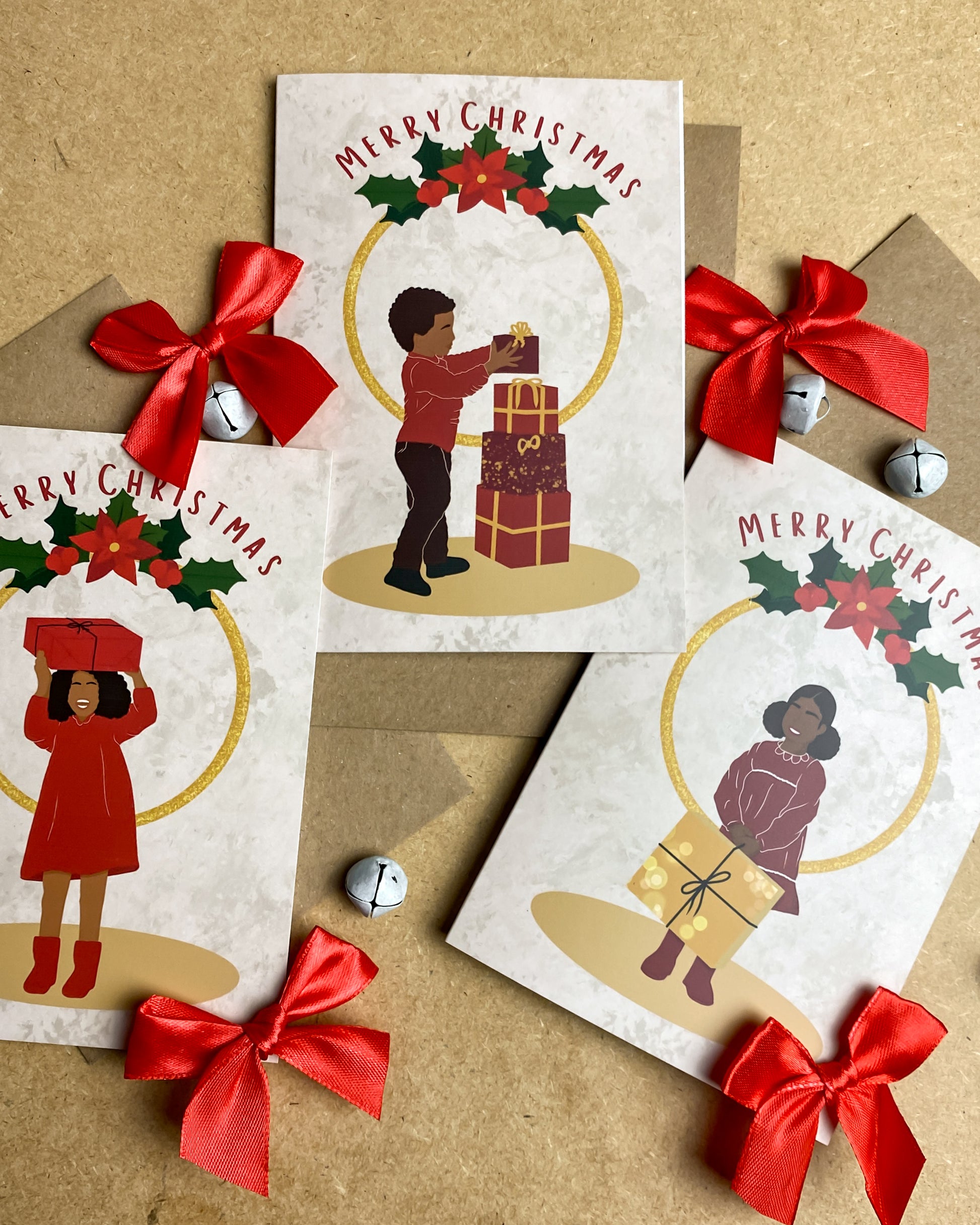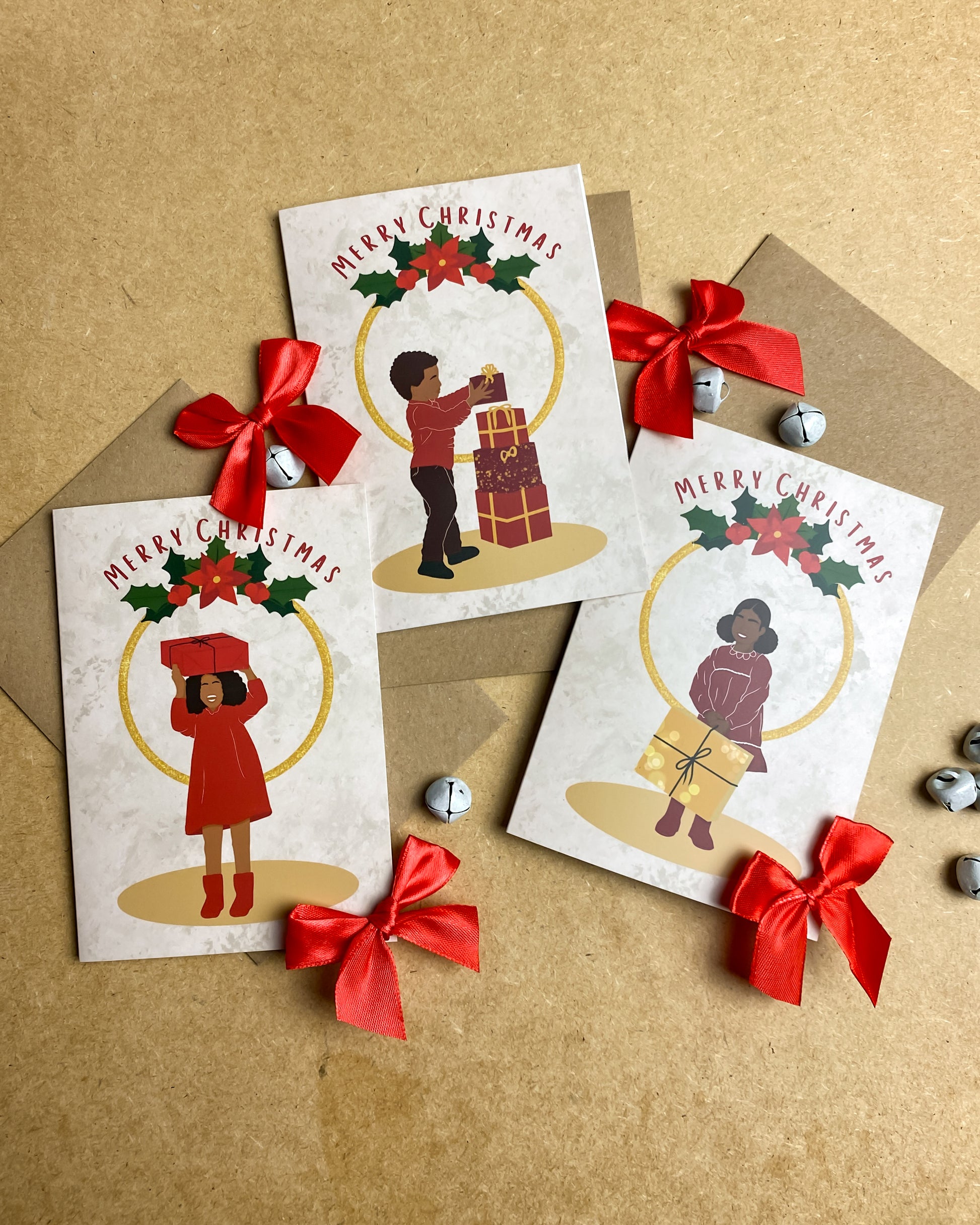 Assorted Multipack Black Chriatmas Gifts 6 Pack Christmas Cards - Children's Seasons Greetings
