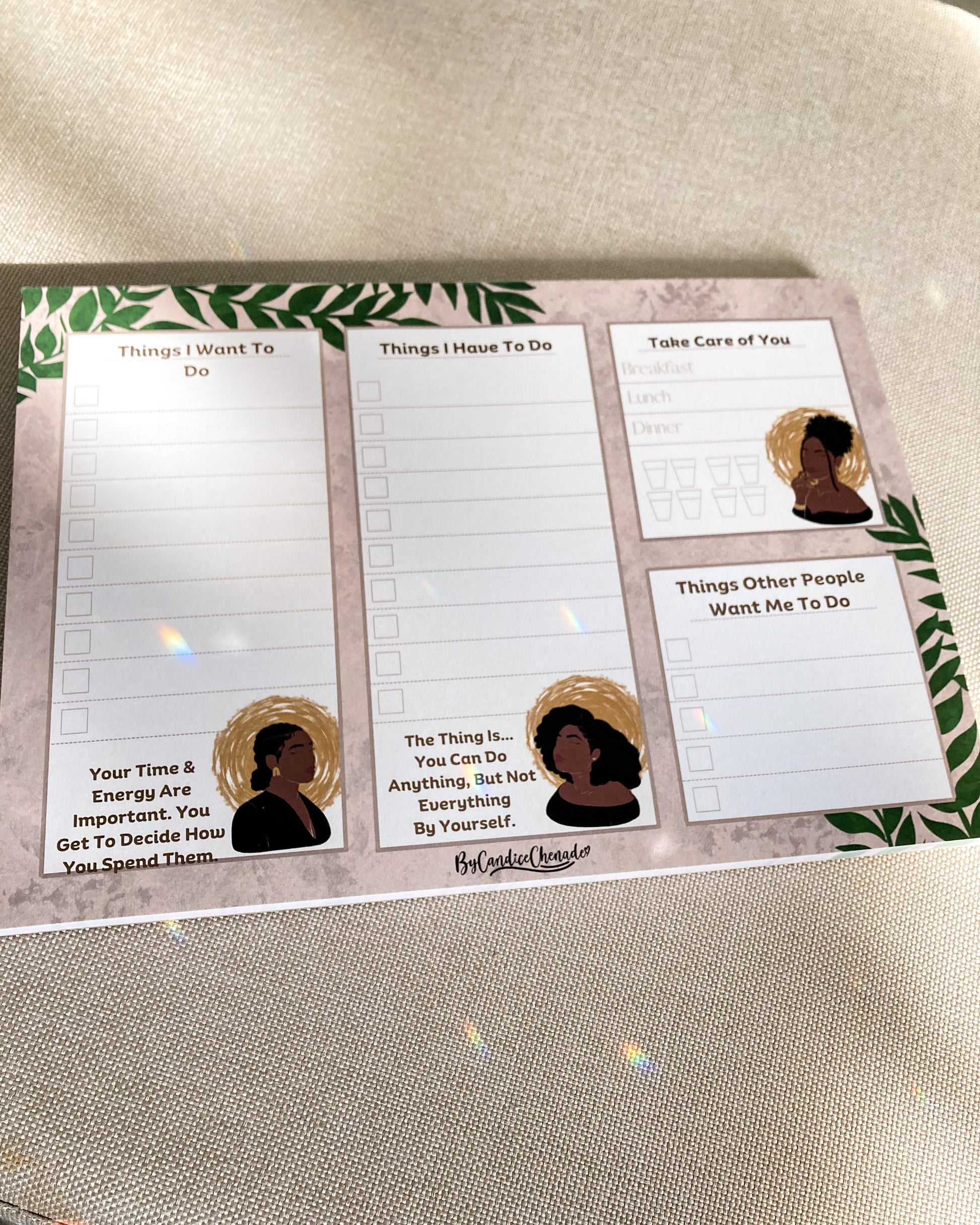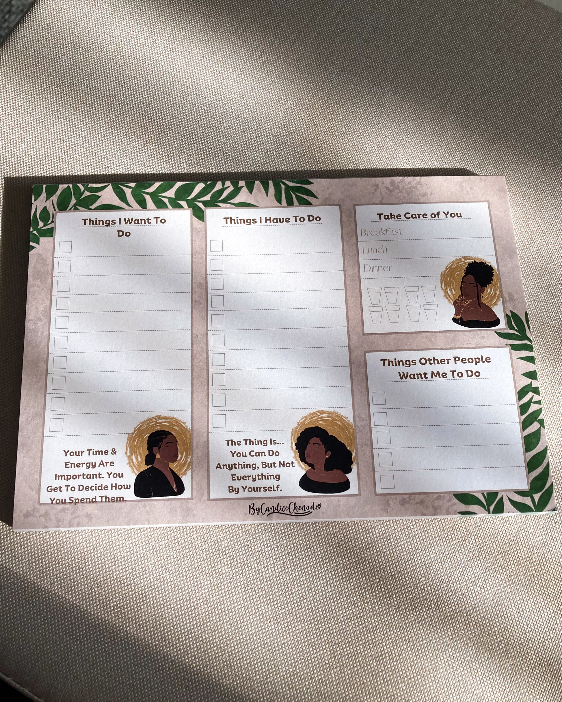 This notepad is perfect for busy people who struggle to make or find time for themselves because of what feels like endless tasks. This to do list was created to encourage you to take care of yourself first.