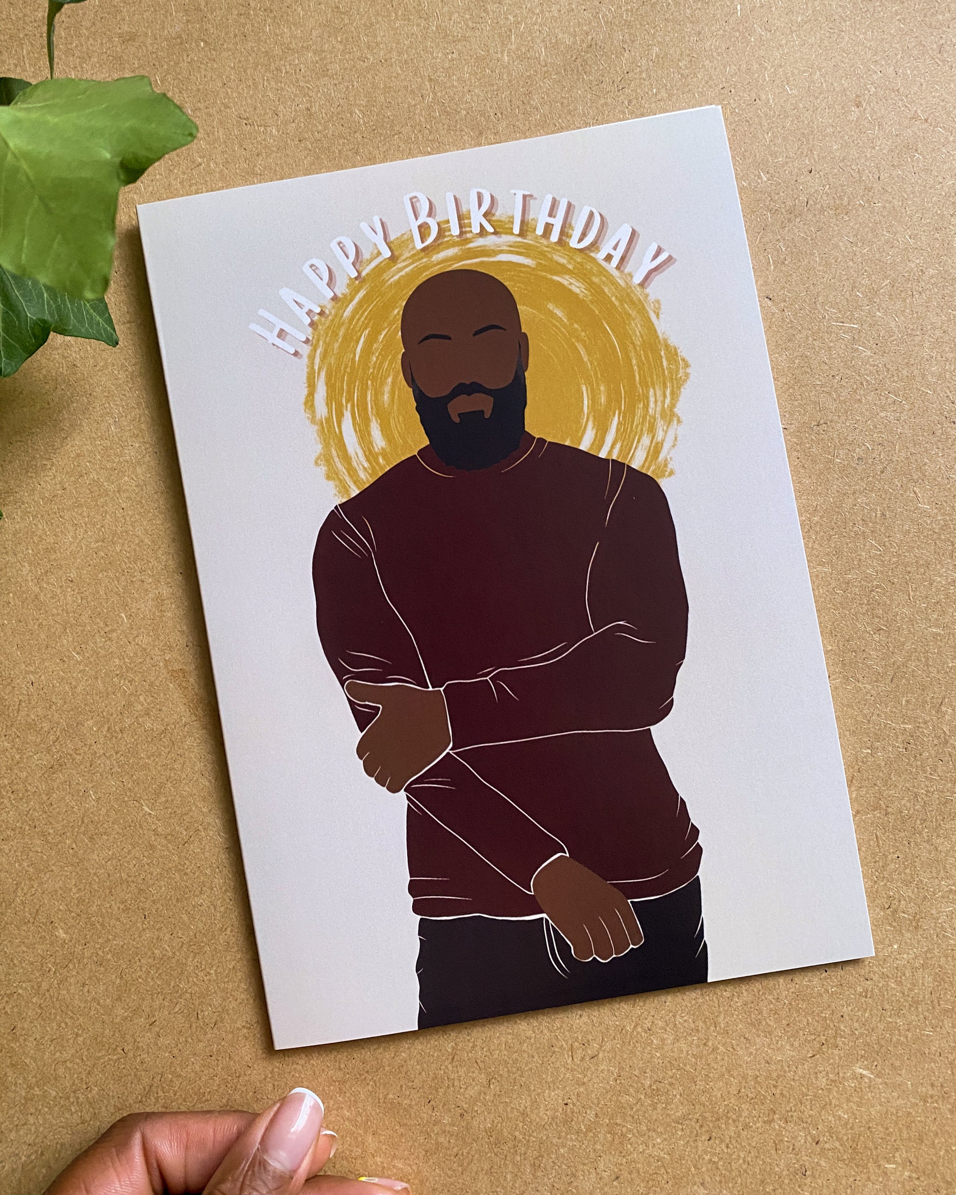 Dash Bald & Bearded Black Man Happy Birthday Card. Dark