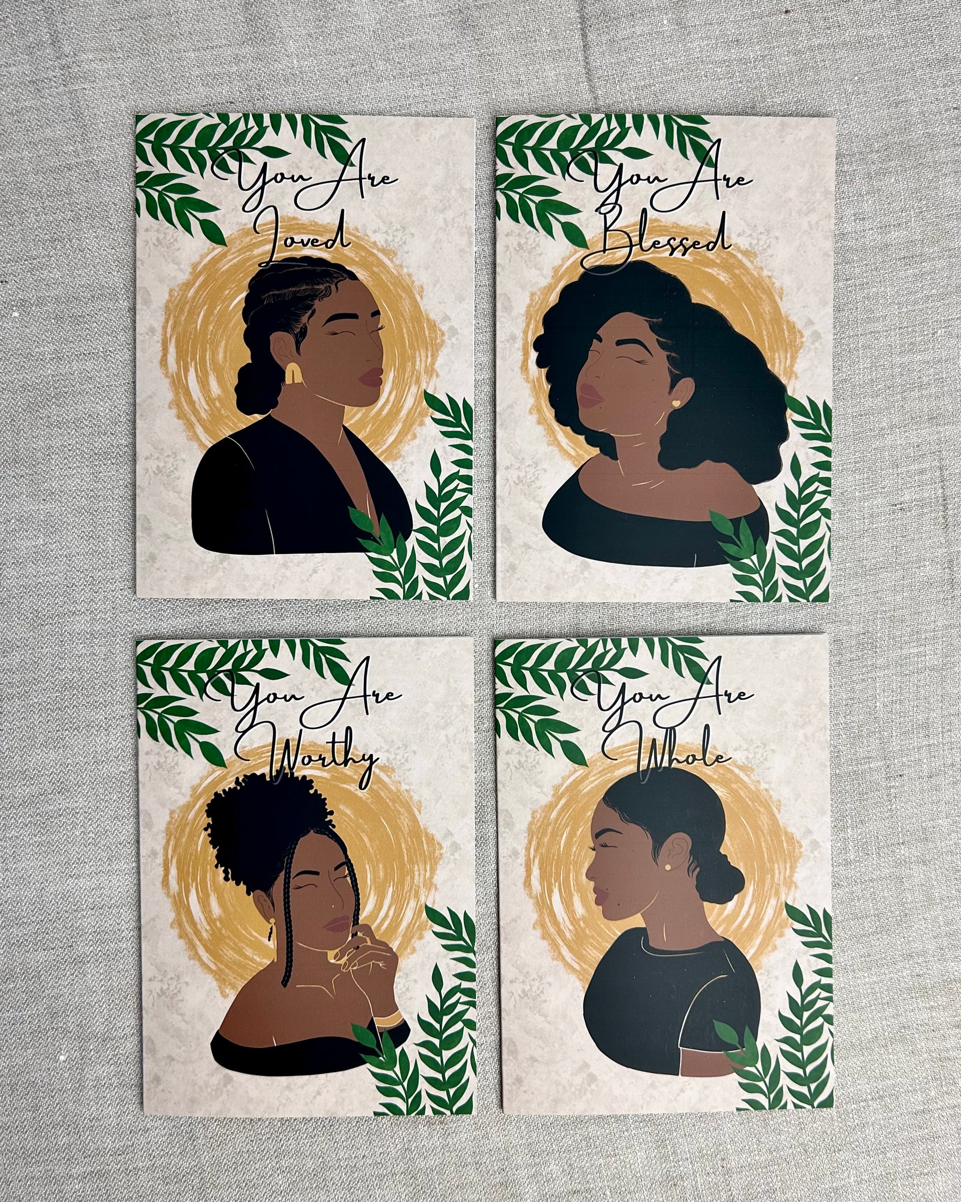 Sometimes, we all need a reminder of who we are. The I Am Collection features four beautifully designed A6 greeting cards (105mm x 148mm), each carrying a powerful affirmation: