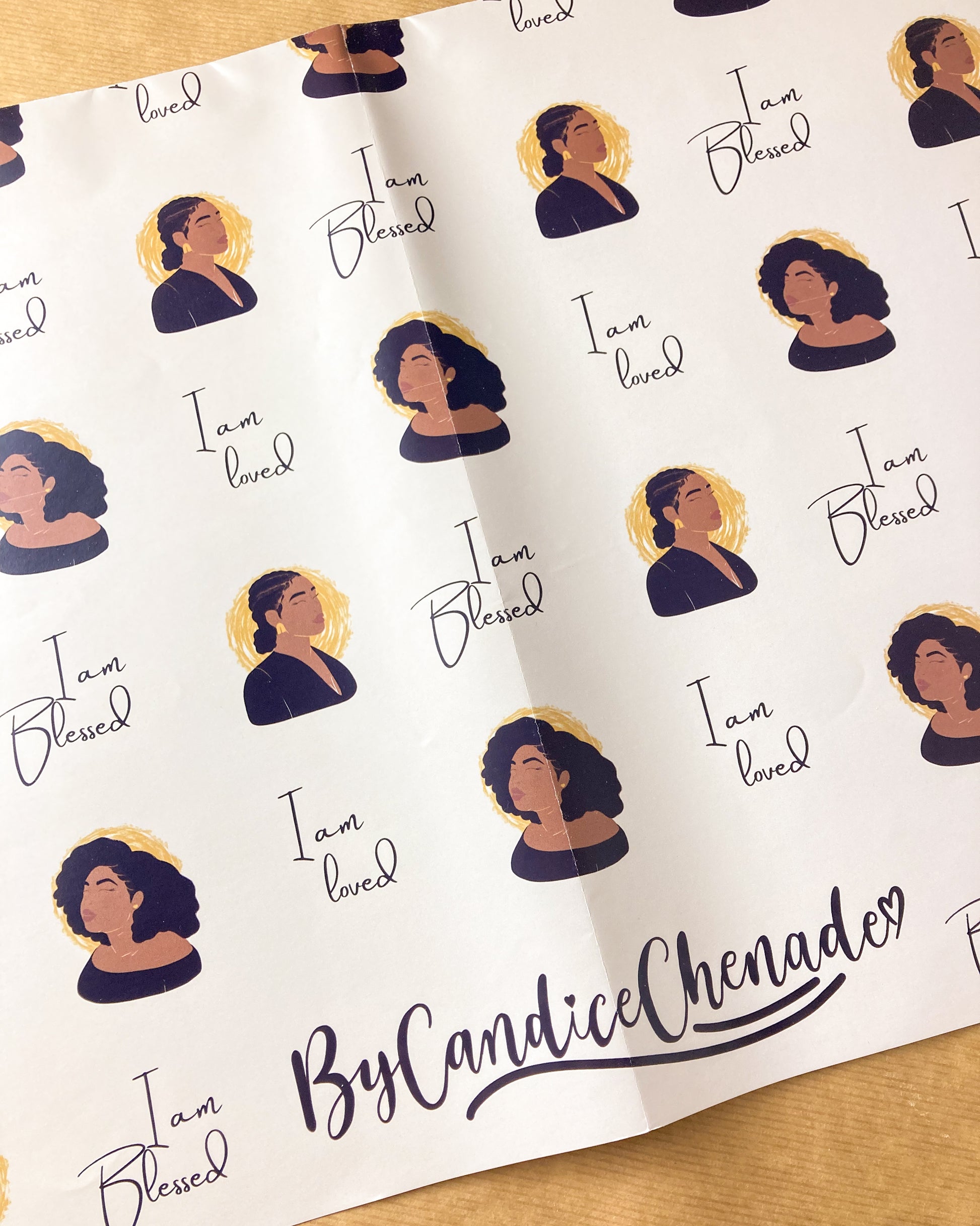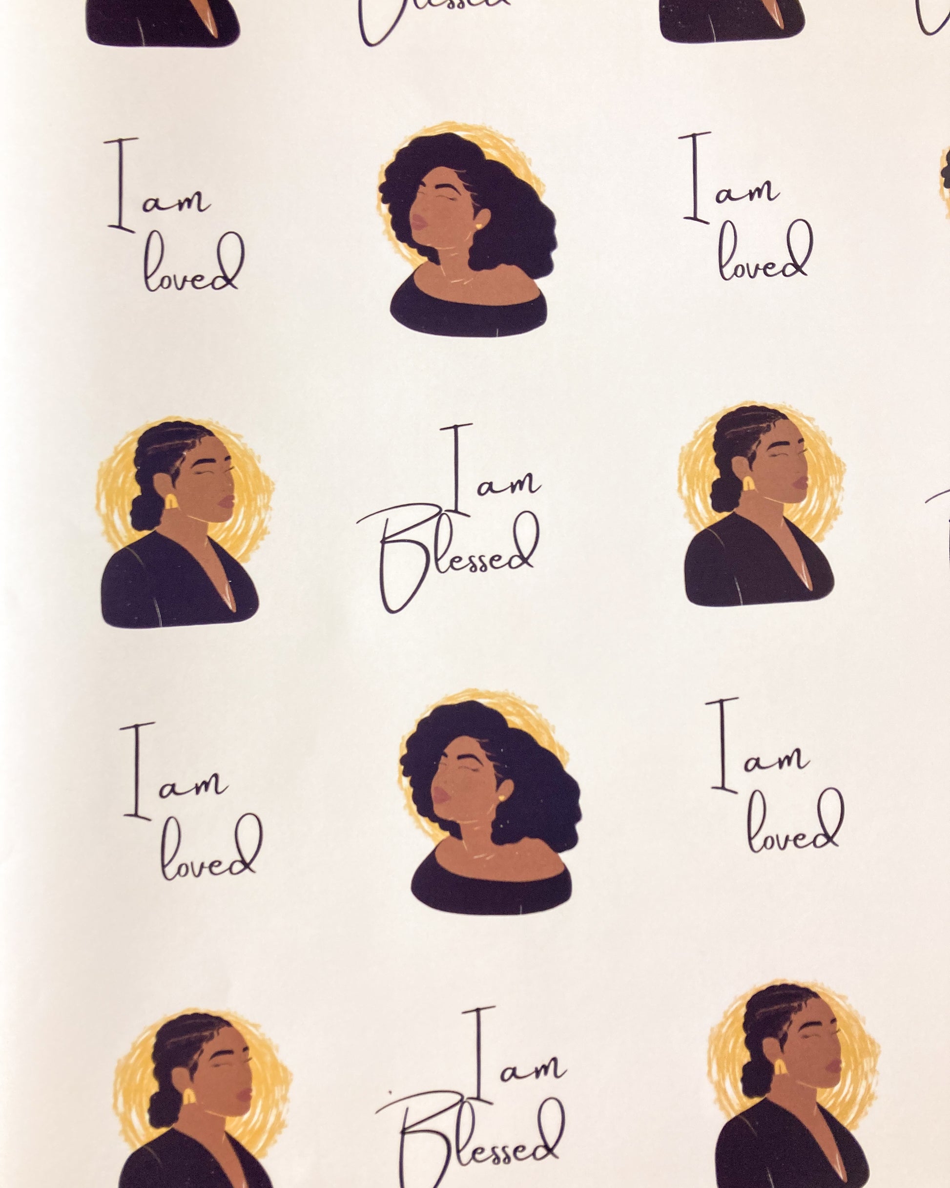 I Am Loved, I Am Blessed Wrapping Paper - Black Mixed Race Woman Gift Wrap