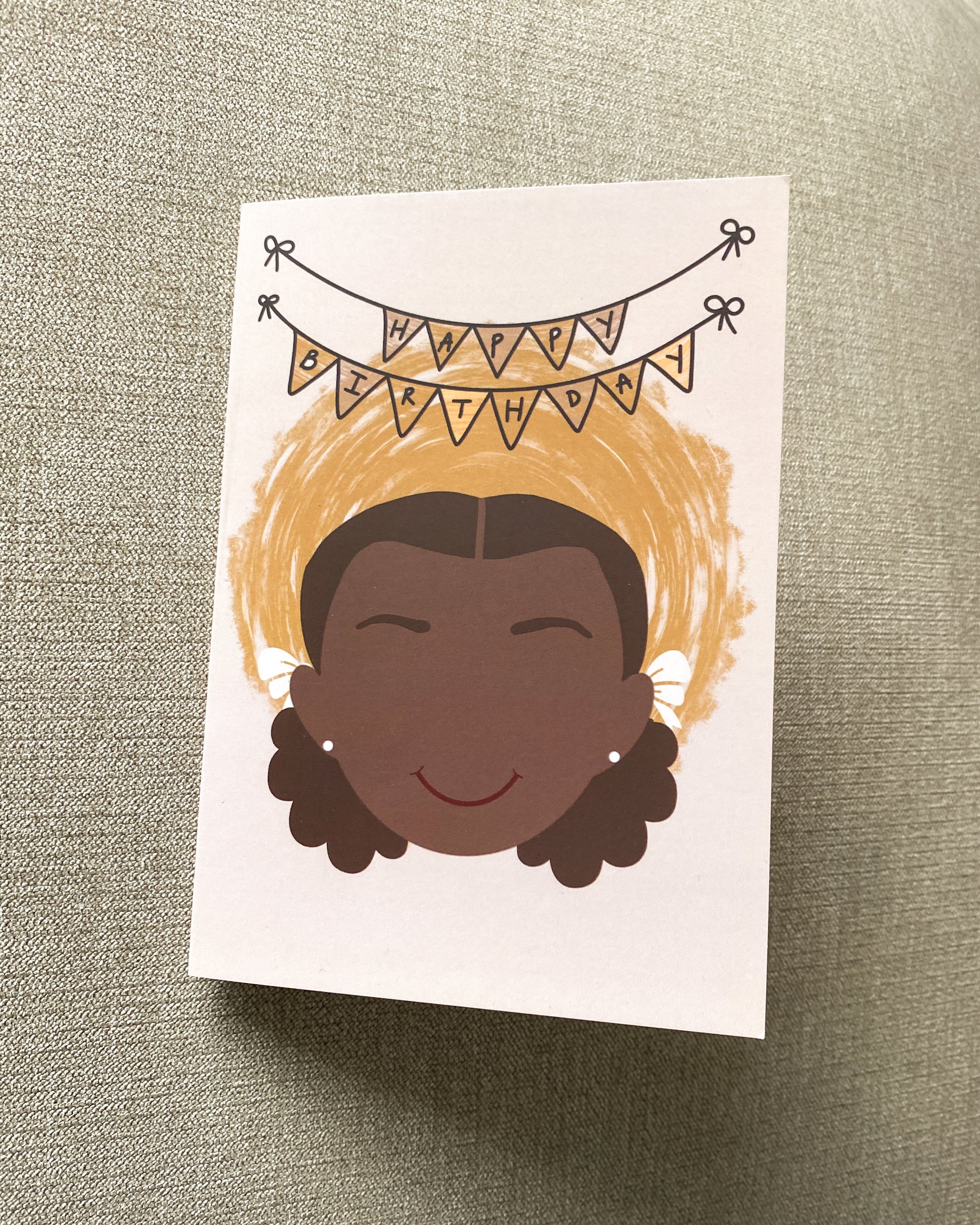 Kids Mini Birthday Card - Girl With Buns - Ri Ri