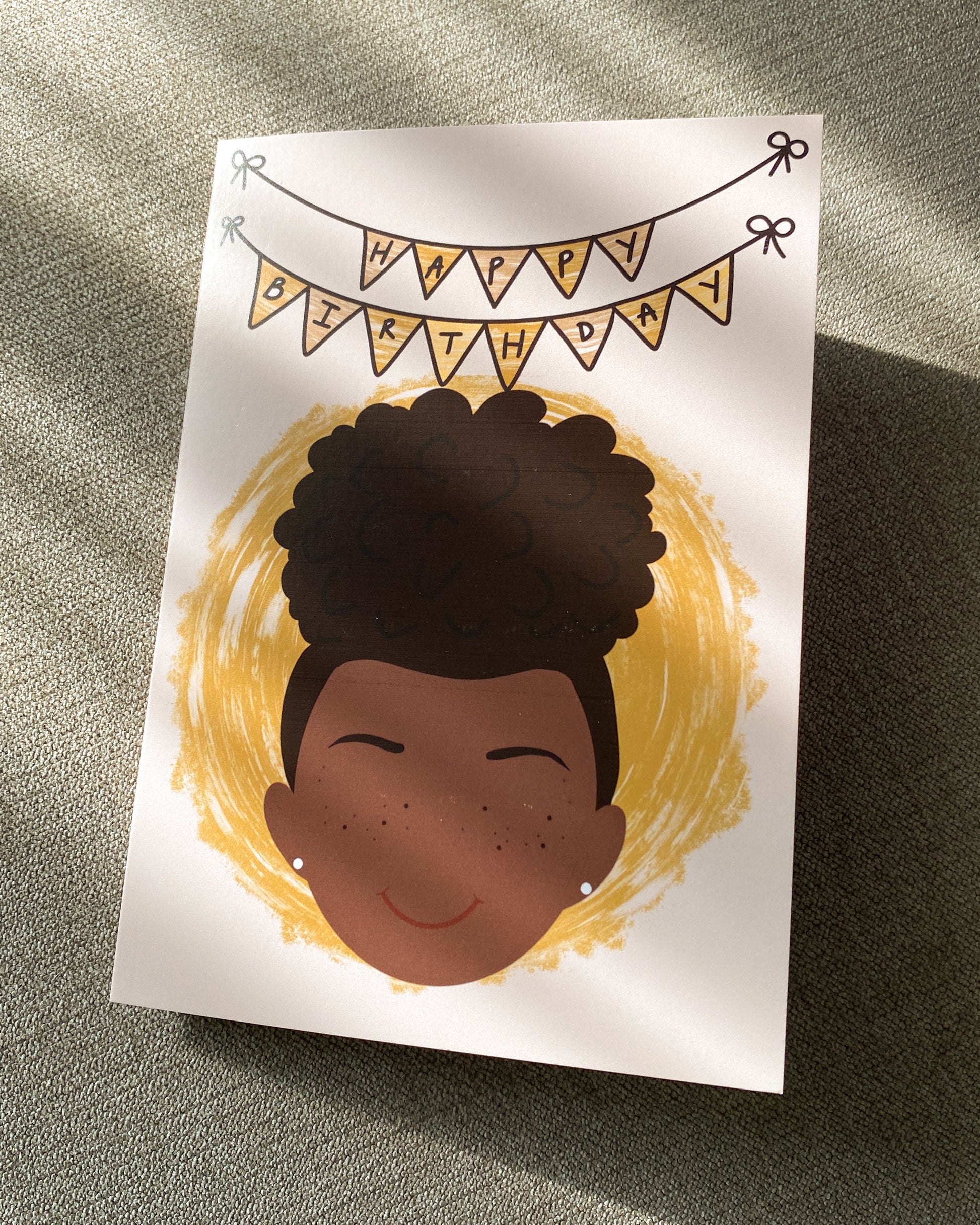 Kids Mini Birthday Card - Girl With Puff Hallie