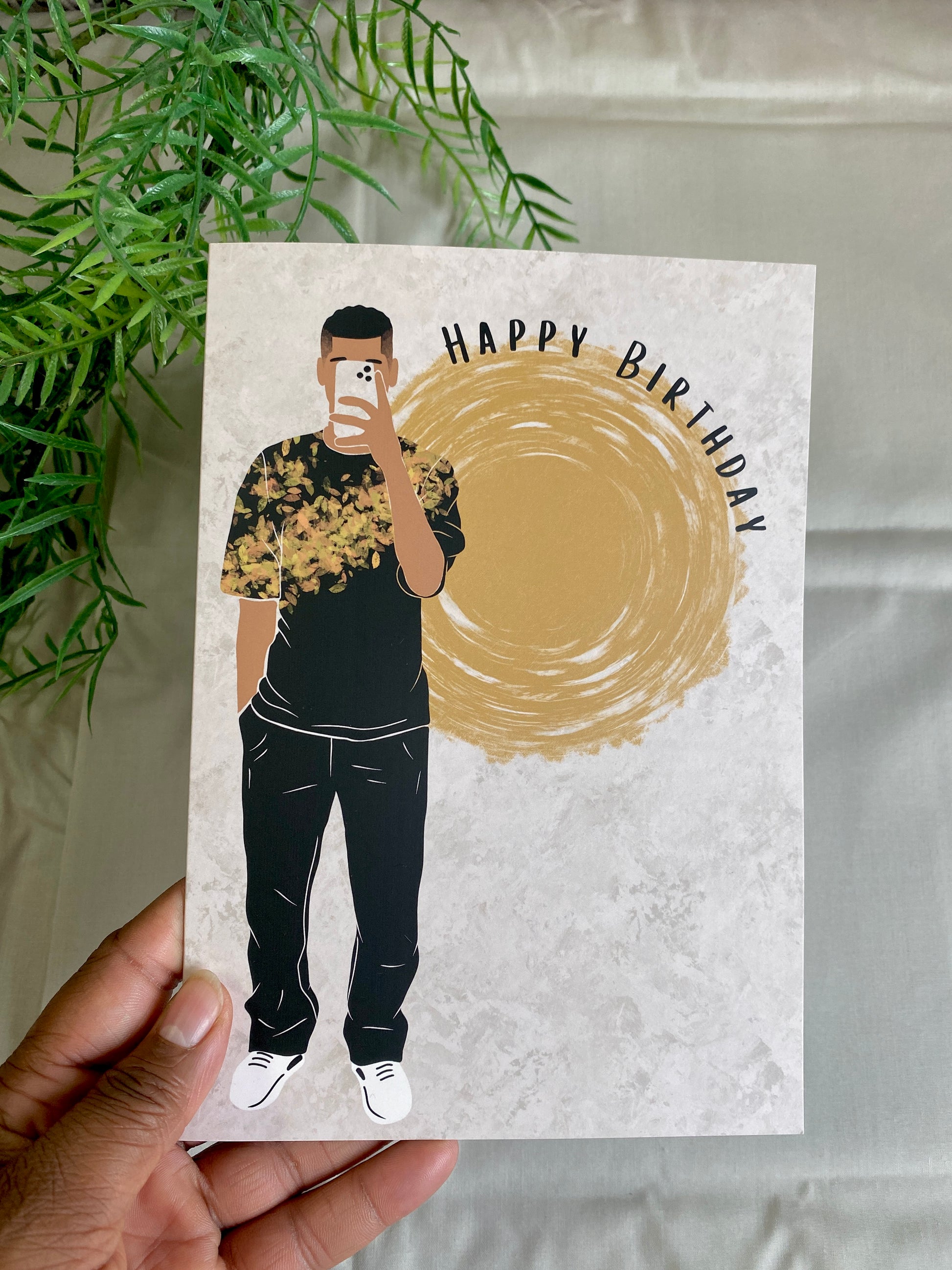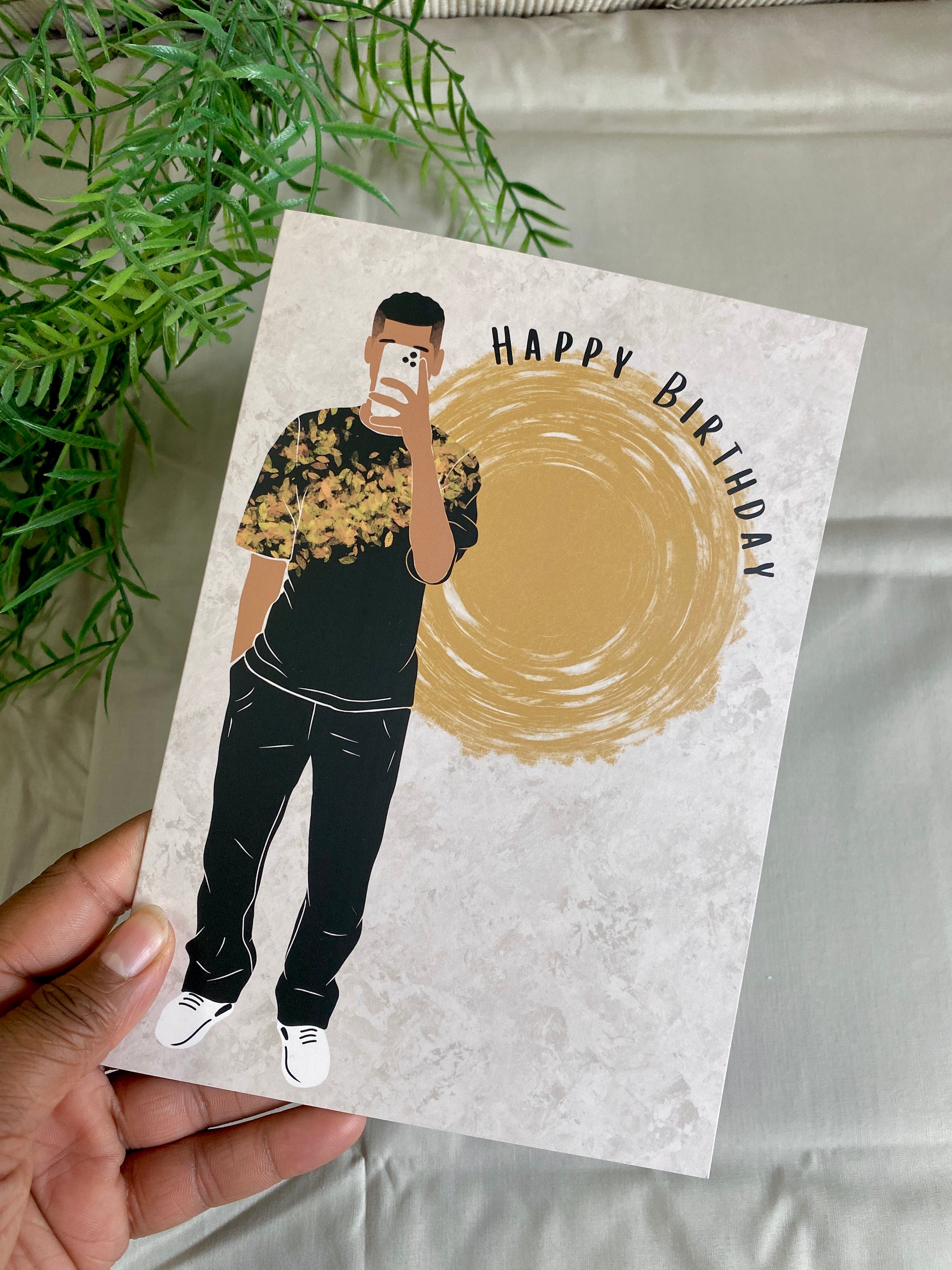 Kingston’s Selfie Happy Birthday Birthday Black Boy / Man Card. - light